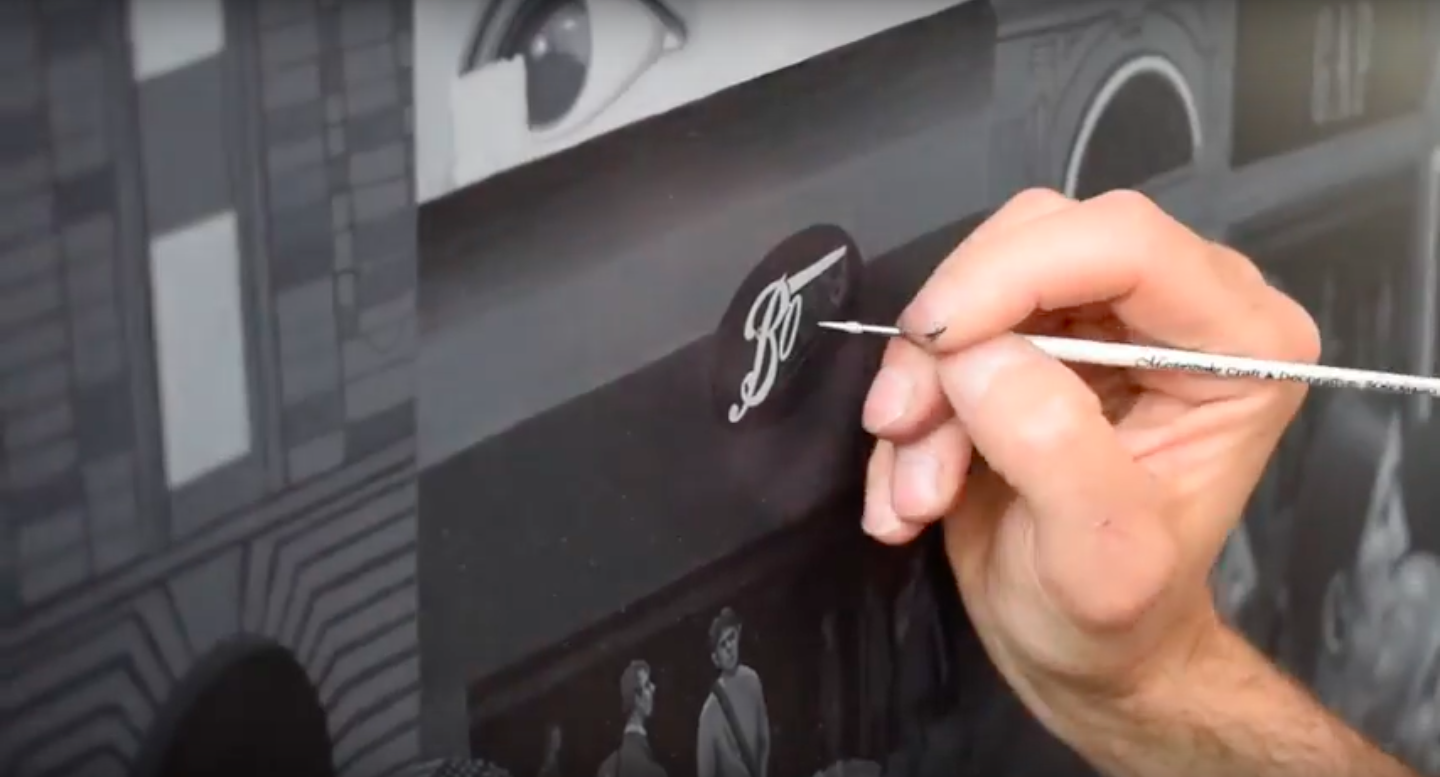 Painting Boots shop sign for Piccadilly Circus London painting.