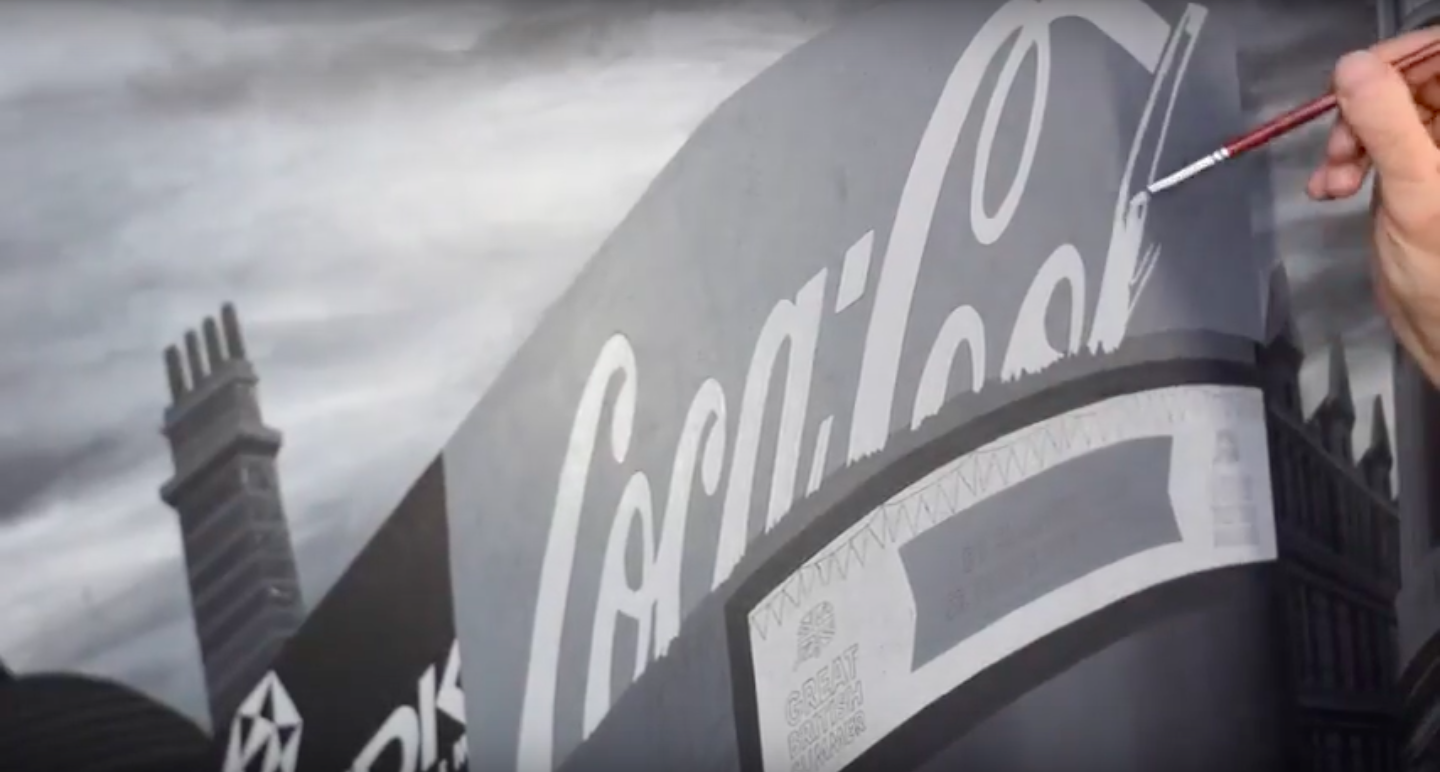 Painting giant Coca Cola advert on Piccadilly Circus London neon screens.